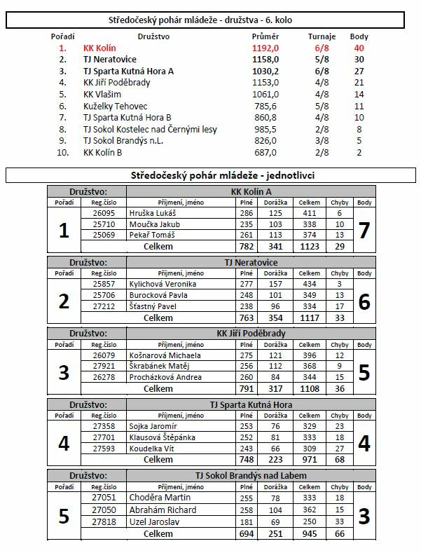 V celkovém pořadí družstev jsme na 1. místě navýšili své vedené na 10 bodů před Neratovicemi. V soutěži jednotlivců má Lukáš na 1. místě náskok 19 bodů na 2.místo hráčky z Neratovic. Tomáš Pekař na 3. místě ztrácí na 2. místo 4 body, ale před 4. místem má sám náskok 8 bodů. Kuba Moučka i přes 1 neodehraný turnaj drží 6. místo a Denisa Holoubková je celkově 10.